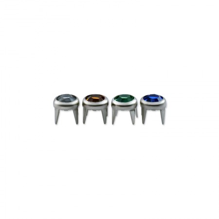 Die Steine werden durch kurze Krallen auf der Rückseite befestigt und können dauerhaft gehalten werden, ohne herauszufallen. Die Zinken der Metallfassungen sind hart genug, um durch Stoff oder Leder zu dringen und auf der Rückseite des Materials richtig zu bleiben. Das Design mit vier Zinken ermöglicht es den Kunden, die Strassstein-Nieten mit einer automatischen Maschine anzubringen!