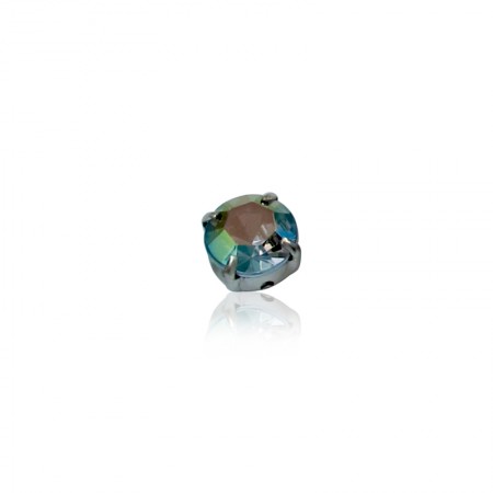 High quality glass chaton stone is mounted with small claws securely into a brass sew on cup....