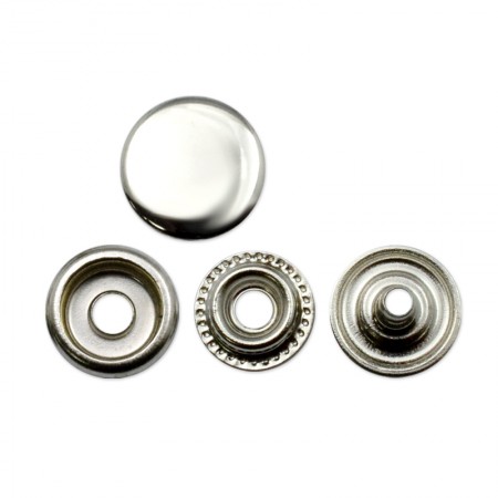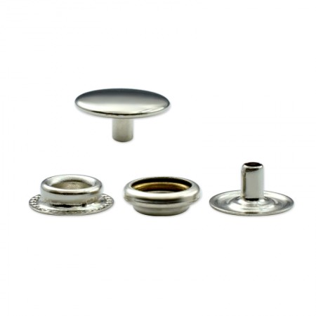 4 parti in un set: cappuccio, presa ad anello, perno e stelo. Il cappuccio è applicato con la presa ad anello, lo stelo va con il perno. Il nostro bottone a pressione ha un'eccellente capacità di tenuta su tessuti fini e causa piccoli danni al tessuto. Logo personalizzato sul cappuccio disponibile.