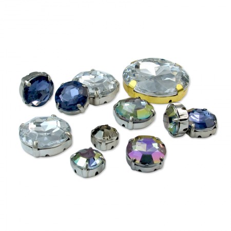 ПодробностиСтеклянный круглый чатон с металлической оправой для пришивания SS27