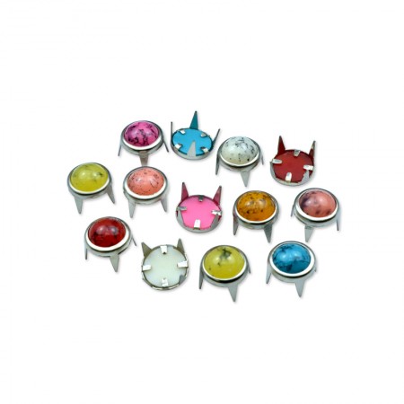หินกลมครึ่งวงกลมขนาด 15 มม. ถูกติดตั้งอย่างใกล้ชิดในจุดวงแหวนทองเหลือง พวกมันเป็นการตกแต่งที่สวยงามบนรองเท้า กระเป๋า เข็มขัด เสื้อผ้า งานหนัง และโครงการอื่น ๆ สามารถติดตั้งได้ด้วยเครื่องมือ DIY หรือด้วยเครื่องจักรที่มีชุดแม่พิมพ์ที่เหมาะสม.