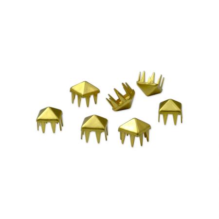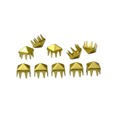 外觀立體獨特的金字塔爪珠是爪珠類產品中受歡迎的款形之一。此款金字塔有4個光滑的平面並且擁有強而有力的爪子可直接穿透皮革或布料向內彎折後牢牢鉚合在物品的背面。DIY使用者可利用手工方式或簡易模具來操作,大量使用者可利用機台搭配正確尺寸的模具將爪珠釘牢於產品上。