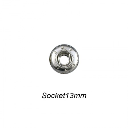 4件一組含面釦、母釦、公釦以及閉口腳管。面釦與母釦鉚合成上釦,公釦與腳管鉚合成下釦,按壓上下釦即可公母扣合。我們的押釦(彈簧釦) 釘於布料上擁有優良的抓牢力,面釦可依據客戶要求制作圖案或是商標設計。